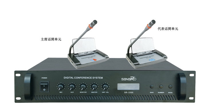 ◎AWT-  3300内建电源供应器和信号放大器,输出功率为550w,可以推动60组以上发言设备,只需增加扩容设备即可推动l50组以上的发言设备
